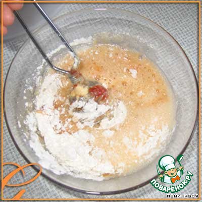 яйца смешиваем с мукой, томатом, подсолим и взобъем