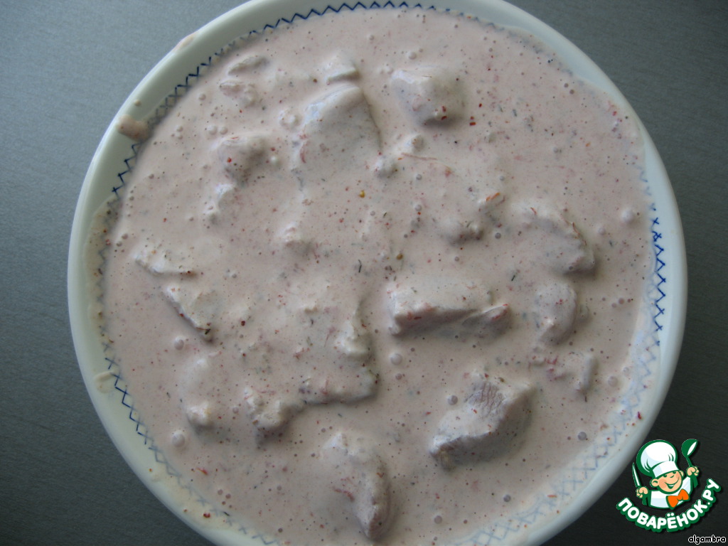Отправляем нашу свинину в маринад на пару часиков. У меня в этот раз мариновалась всего сорок минут.