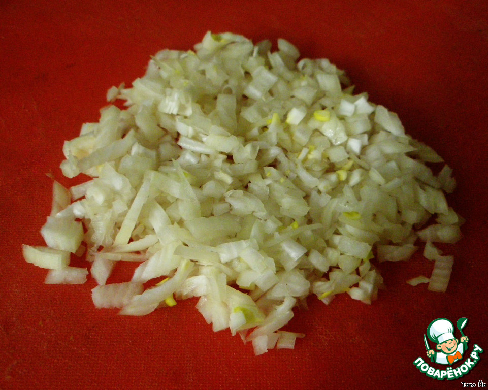 Мелко нарубим лук.