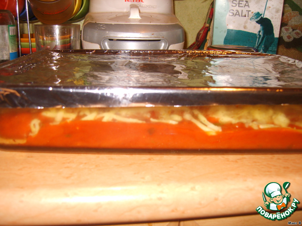 8. Посыпаем тертым сыром, накрываем фольгой и запекаем 30 минут.
