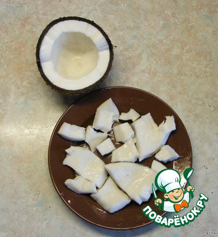 Кокос чистим, натираем на мелкой терке.
