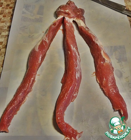Берём вот такую свиную вырезку. Для большой компании можно взять и говяжью.