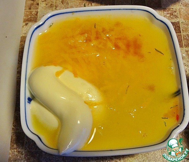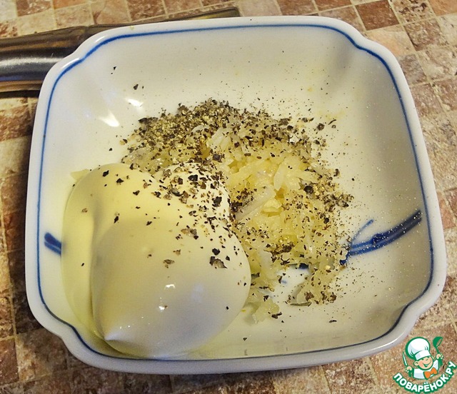 Для третьего - 1ст. л. майонеза "Махеевъ", 2 измельчённых зуб. чеснока, 1\2 чл. л. соли и немного свежесмолотого чёрного перца.