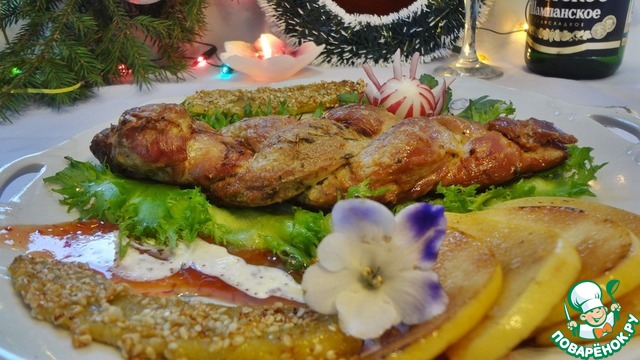 | На праздник хочется всегда иметь самый вкусный кусочек мяса. Иногда трудно решить, каким именно рецептом воспользоваться. Поэтому я сегодня решила в одном рецепте объединить три варианта и посмотреть, что из этого получится. Результат мне понравился, поэтому предлагаю на ваш суд мой рецепт. Он удобен ещё и тем, что его можно приготовить заранее и заморозить, а в день приготовления просто с утра достать, чтобы оно оттаяло, поставить в духовку на 30 мин., и у вас уже будет готово замечательное, оригинальное блюдо. |