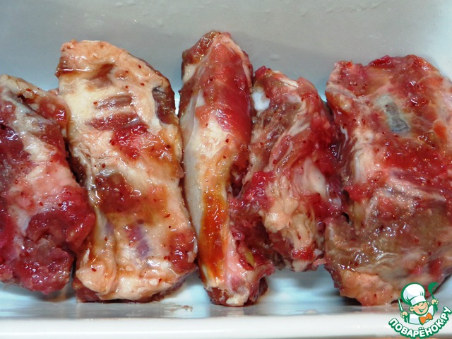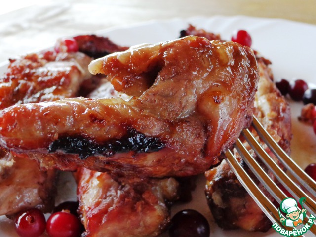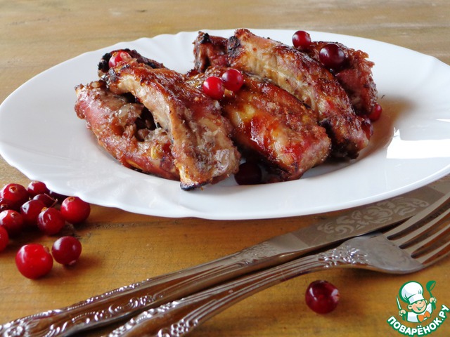 | У нас в семье очень любят рёбрышки, и для их приготовления мы используем разные способы и маринады! В этом рецепте брусничный соус придаёт мясу чуть лёгкую кислинку! Рёбрышки получаются очень нежные и ароматные! |
