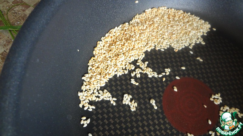 Обжарить кунжут до золотистого цвета и положить его в фарш.