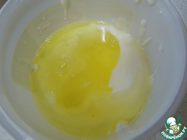 Сметану соединить с яичными белками, посолить и немного взбить.