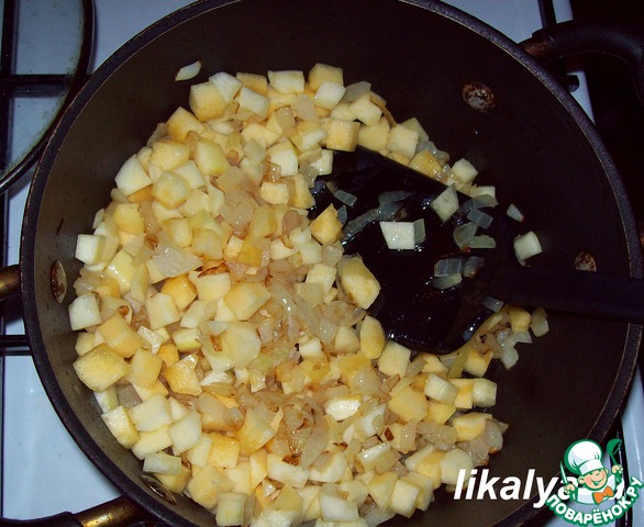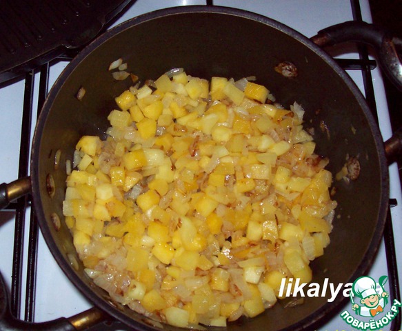 В сотейнике (сковороде) разогреть растительное масло и спассеровать лук.