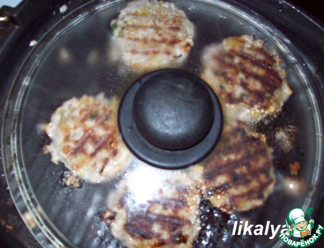 Перевернуть на другую сторону. При желании, можно жарить без крышки, но я в силу воспитания (врачи предки), не могу не протушивать котлеты под крышкой.