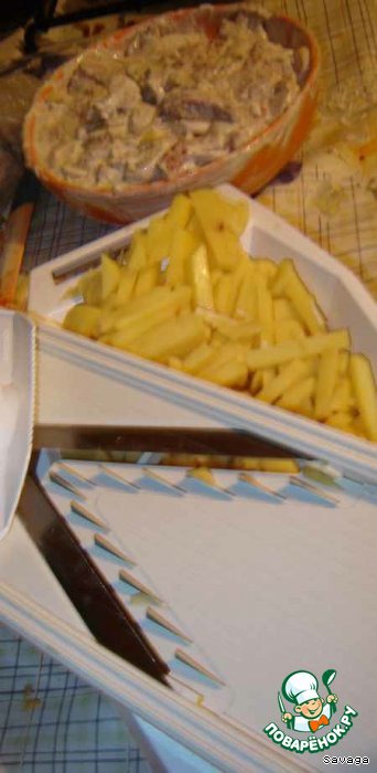 Теперь чистим картошку и нарезаем ее тонкой соломкой,