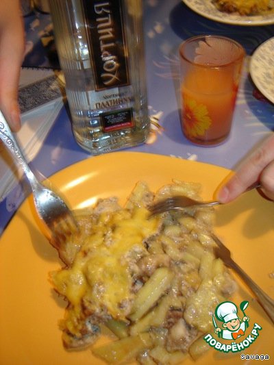 | Как-то приходили ко мне гости поиграть в преферанс. Ну и захотелось под водочку сделать чего-то в меру жирного и вкусного. В итоге была произведено сие творение. На вид может не очень, зато вкусно и сытно:) |