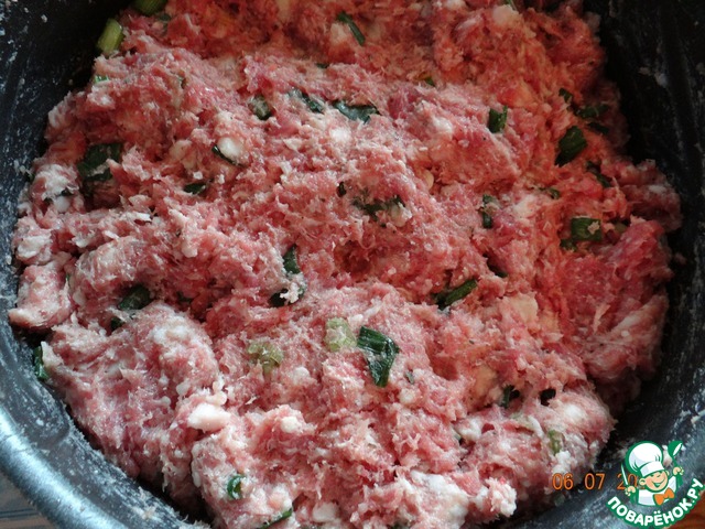 Добавить к фаршу холодное пиво и хорошо вымесить;