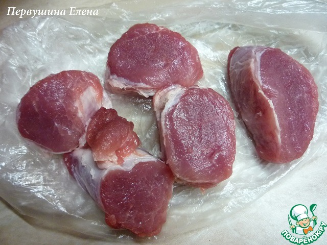 Обжарить свинину на растительном масле с двух сторон до золотистого цвета.