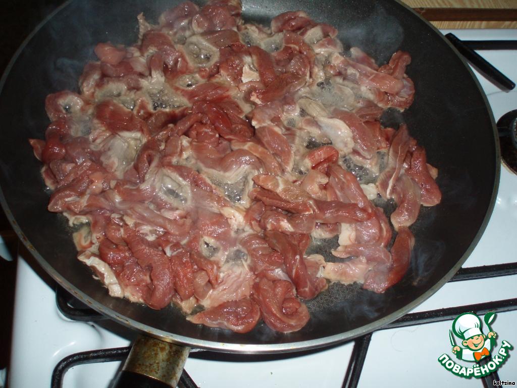 Обжариваем мясо, пока оно не подрумянится, примерно вот так.