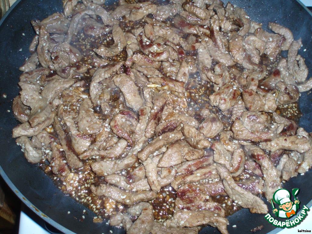 Так же мясо можно сделать и с овощами, правда, это займёт чуть больше времени. Для этого мы делаем всё тоже самое, но до последнего шага с крахмалом.