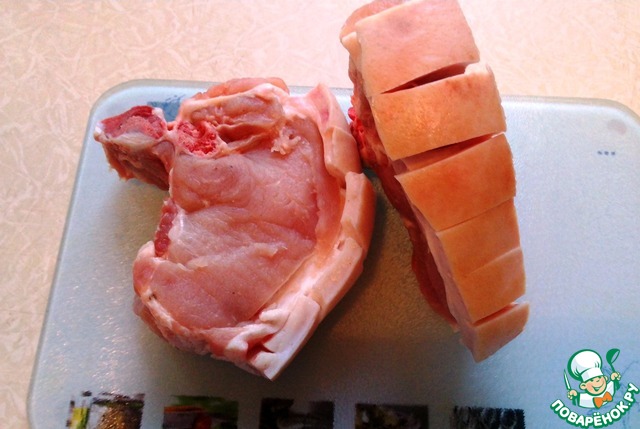 Выполните надрезы на коже отбивных (на толщину кожи и жира)
