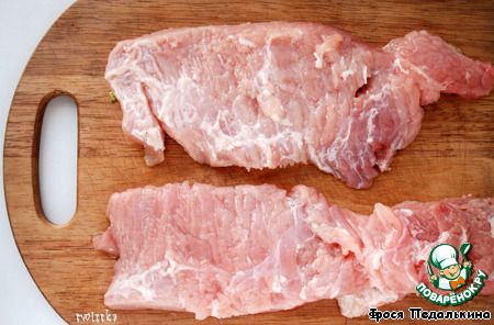 Свинины нужно 2 куска по 300 г примерно. Вымыть, обсушить, очистить от пленок и жира