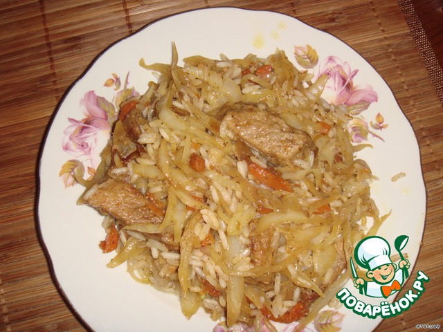 Добавляем рис (рис нужно заранее сварить почти до готовности), перемешать,