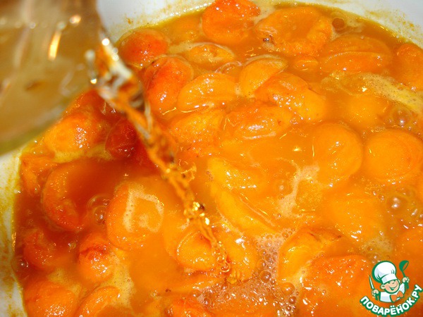 Добавьте соль, перец по вкусу. Проварите абрикосы минут 15.