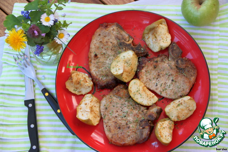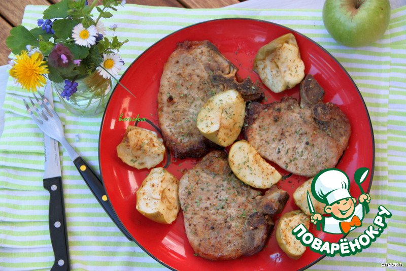 Свиные котлеты с яблочками в коньячно-горчичном соусе