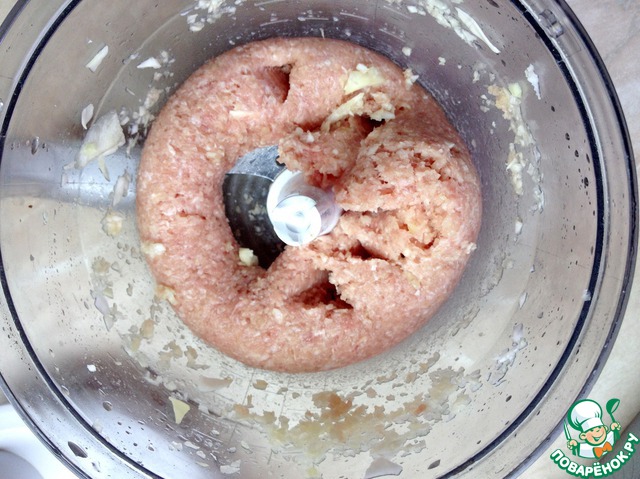 К получившейся смеси добавим фарш и все смешаем. Я делаю это тоже в блендере.