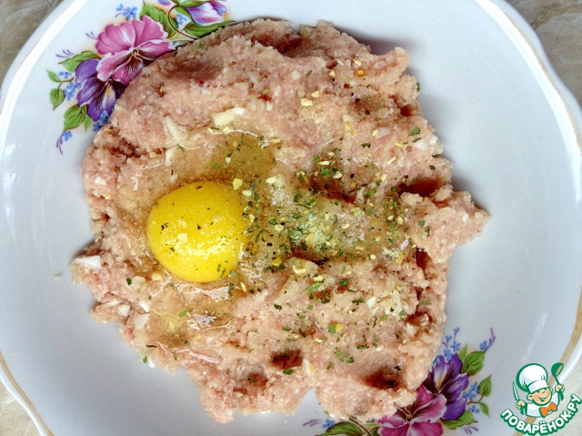 Затем добавляем яйцо, соль и специи. Все перемешиваем.