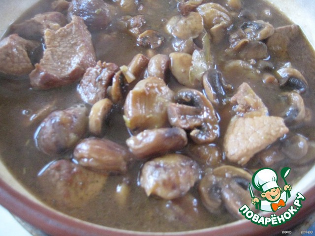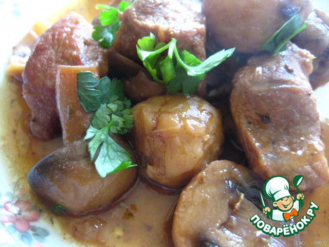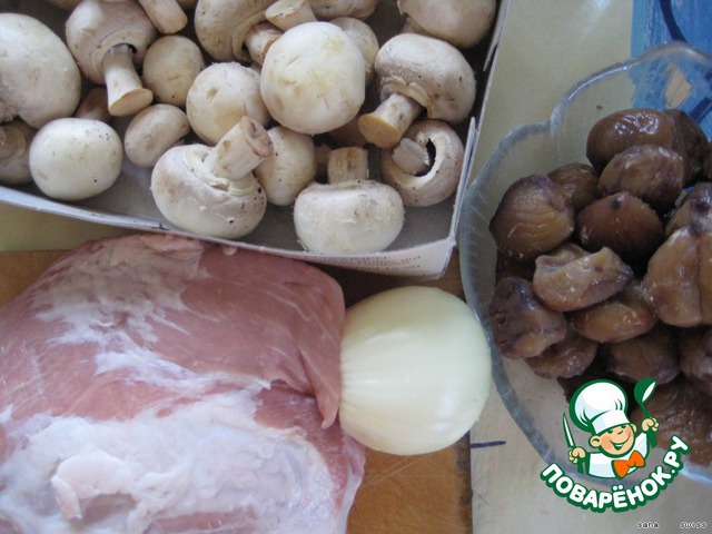 Свинина, тушеная с каштанами и грибами