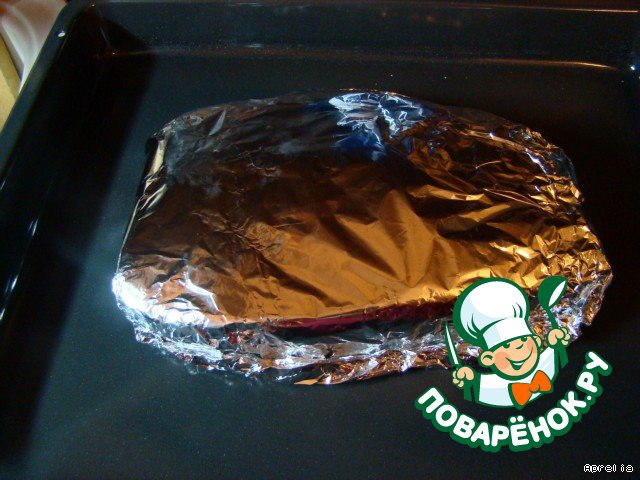 Заворачиваем мясо в фольгу и отправляем в духовку на 50 мин. при 200 градусах.