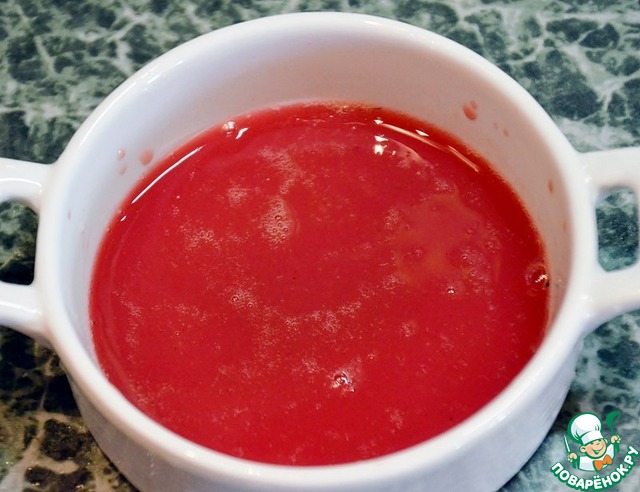 Из вишни выжать сок. Я протирала через сито, затем жмых отжимала через марлю.