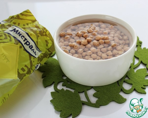 Нут замочить водой на ночь, воду слить, налить свежей и отварить до готовности.