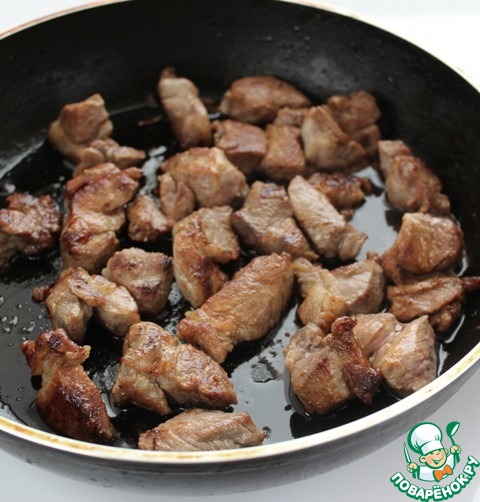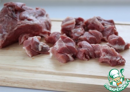 Нарежьте небольшими кусочками мякоть свинины или баранины.