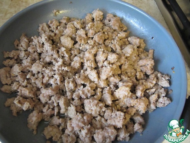 Фарш (у меня свиной) посолить, слегка обжарить на растительном масле, не пересушить!