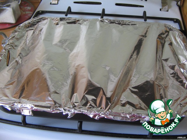 Доливаем в форму немного воды или бульона, накрываем фольгой и запекаем в духовке при 150 градусах около 50 мин.
