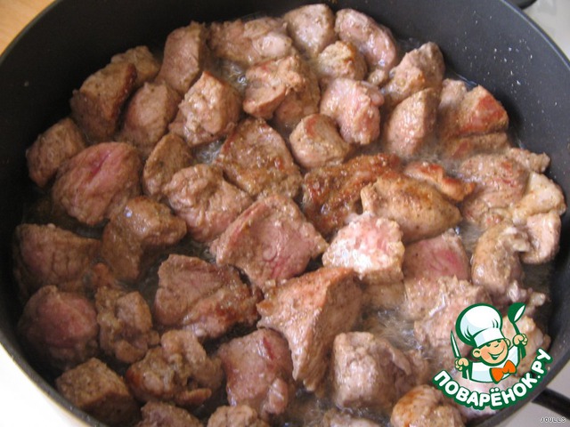 Мясо обжариваем на растительном масле до золотистого цвета.
