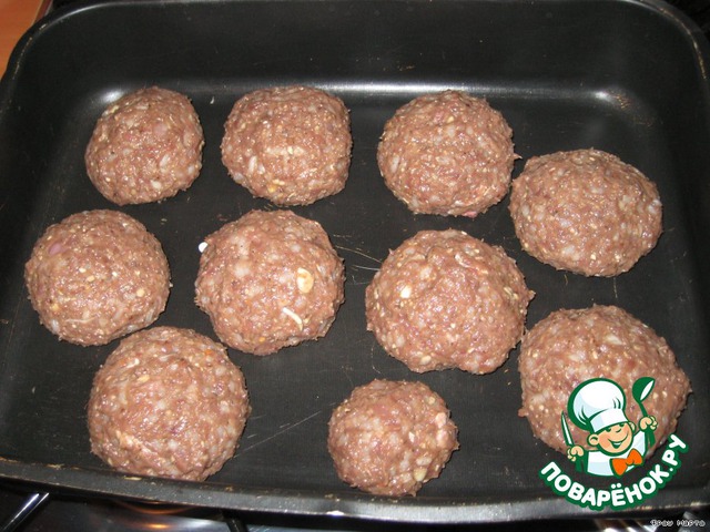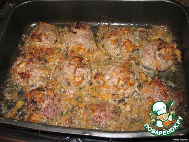 Заливаем грибной смесью тефтельки, добавляем водички и в духовку на 30-40 минут при температуре 180*С.