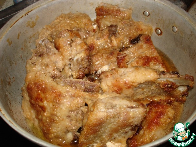 Выложить рёбрышки и довести до готовности под крышкой на слабом огне. Примерно 1 -1.5ч.