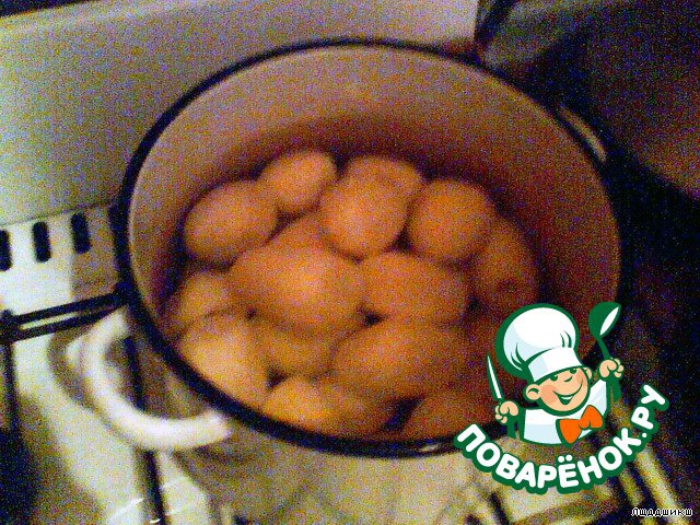 Картофель чистим и отвариваем до готовности с солью и лавровым листом.