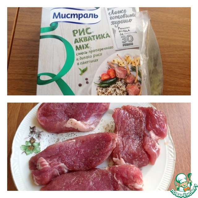 Свинину нарезать на порционные кусочки. Посолить и поперчить