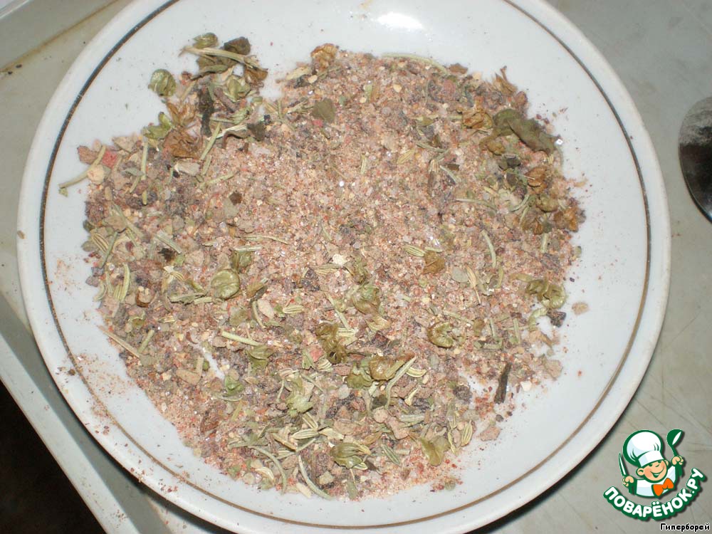Готовим смесь приправ. Смешиваем ингредиенты, указанные, как для смеси приправ.