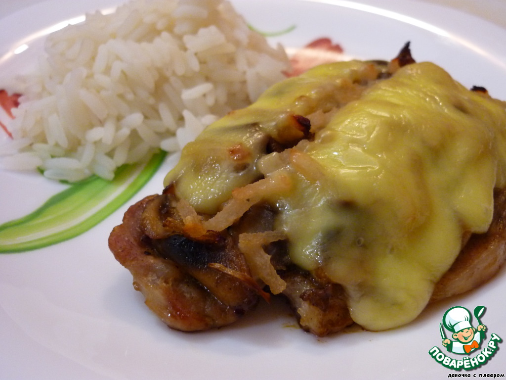 Отбивные с грибами и грушей