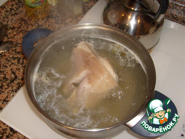 Варим рульку в воде с добавлением черного перца горошка,соли и лаврового листа 1,5 часа.