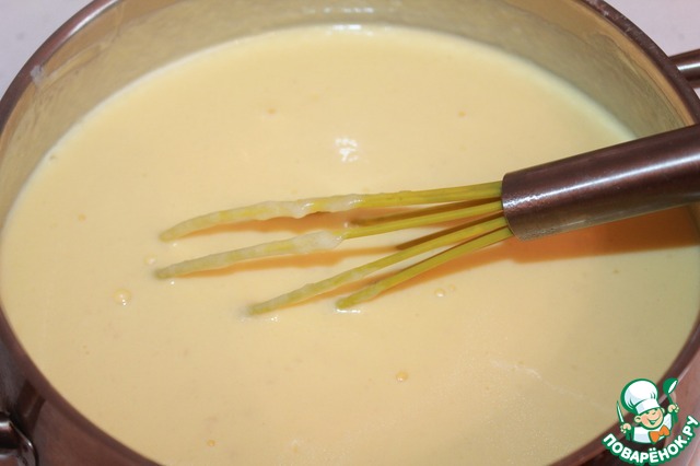 К раскаленному растительному маслу добавляем муку, быстро перемешиваем, добавляем бульон и снова тщательно перемешиваем. Оставляем на слабом огне на несколько минут.
