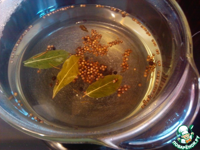 В воду добавляем соль, сахар и специи для рассола, кипятим и остужаем