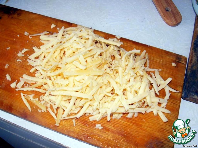 Сверху лук, потом сыр. В духовку на 30-40 минут при 180°С.
