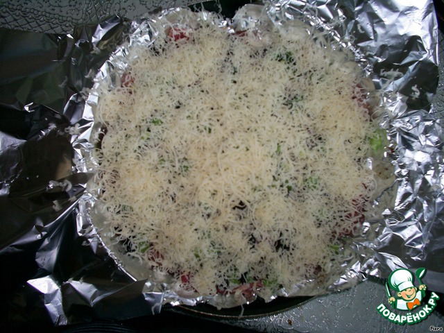 Сверху накрыть фольгой, чтобы все края были закрыты. Печь в духовке 35-40 минут. Можно подать с рисом или овощами.