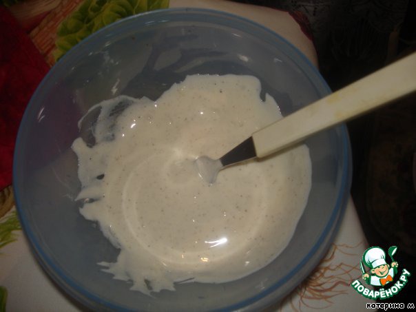 Готовим соус: майонез, чеснок и чёрный молотый перец.
