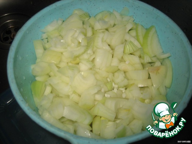 Режем лук, я его промываю холодной водой, а то очень злой)))