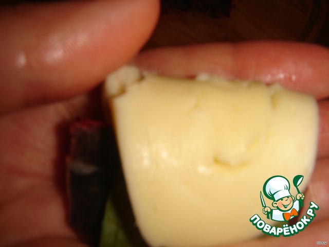 Сверху оберните кусочком сулугуни.