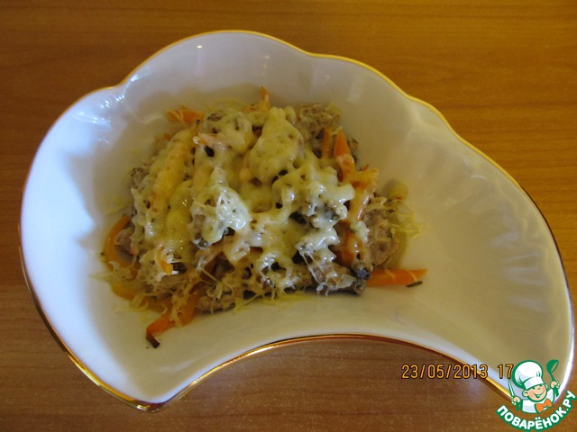 Украшаем сыром и наслаждаемся нежным мясом (украшаем сыром пока мясо горячее чтобы сыр расплавился).