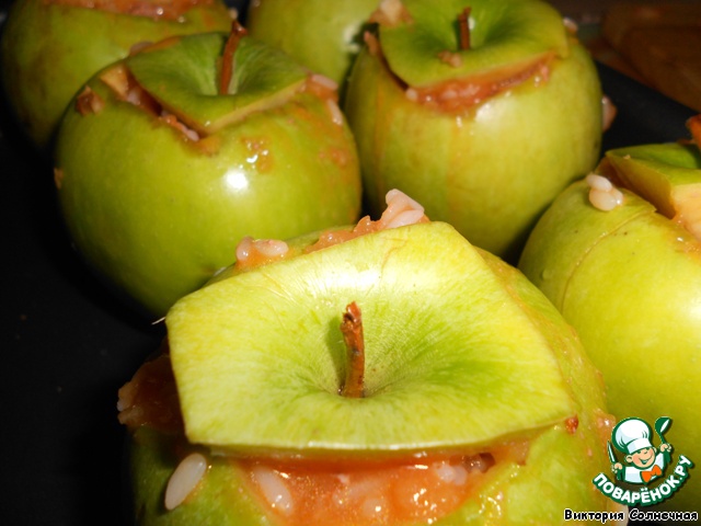 Доведите блюдо до готовности в разогретой до 200*С духовке. Вам нужно, чтобы пропеклись и стали мягкими яблочные стенки. Не передержите! Иначе яблоки могут осесть и развалиться.